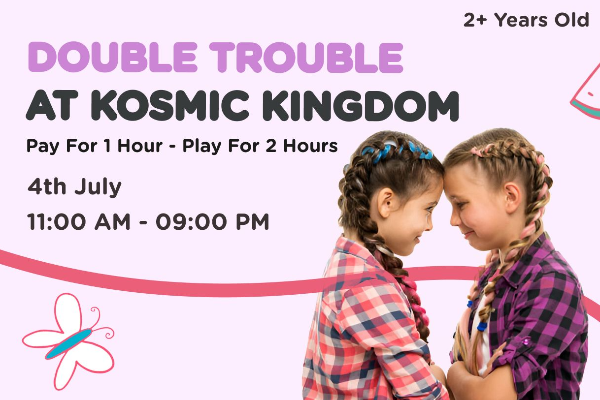 Get ready for an out-of-this-world experience at Kosmic Kingdom! We are excited to announce our special "Double Trouble" event where the fun doubles up for your little explorers. On this thrilling day, when you pay for 1 hour of playtime, your kids get an extra hour absolutely free! That’s 2 hours of non-stop excitement and adventure!