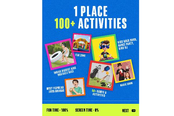 b) Hungama Zone: The stage area, where there's excitement throughout the day with dance performances, magic show, kids rock band performance, live DJ, dance fitness and family yoga, etc.